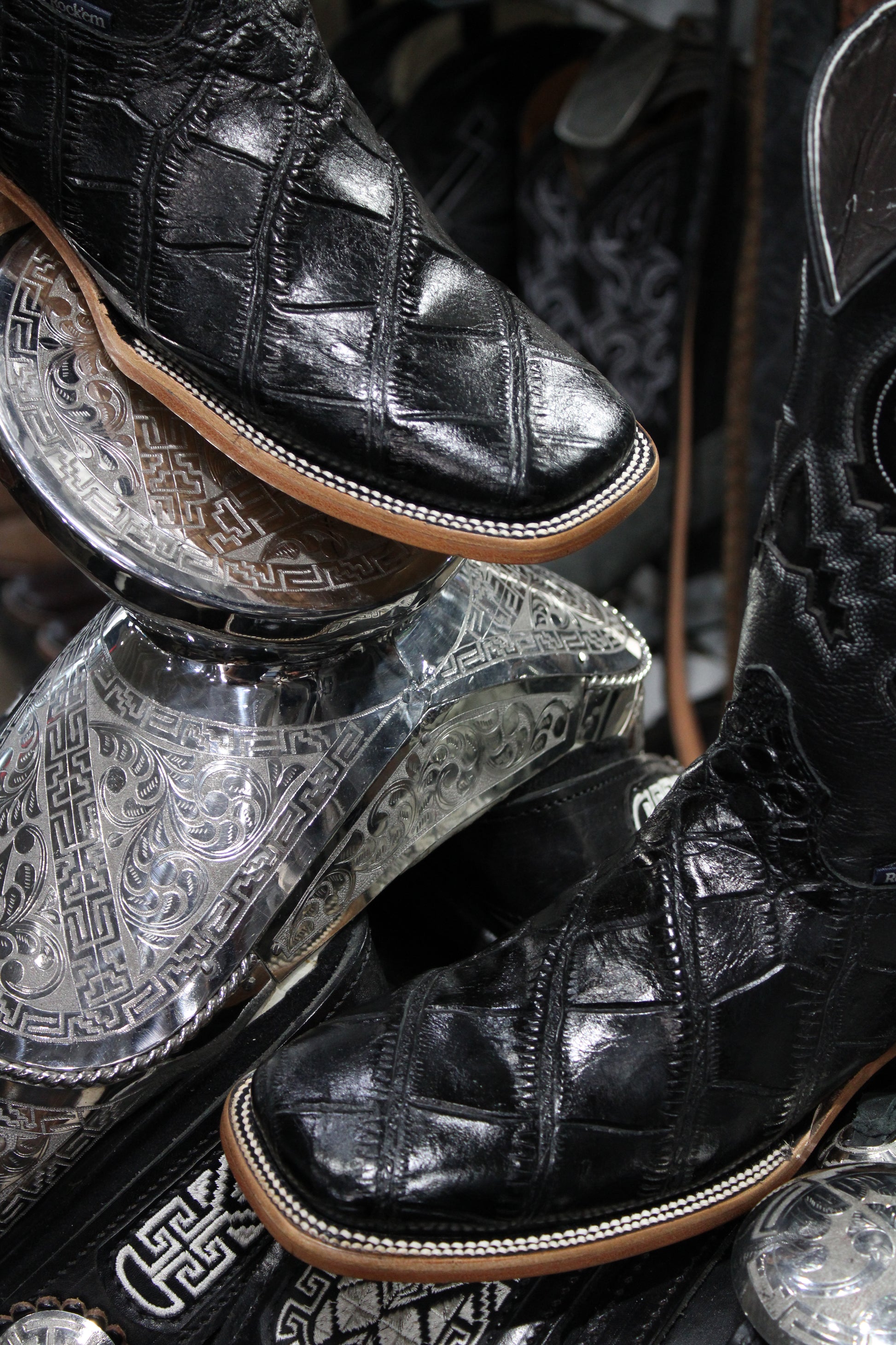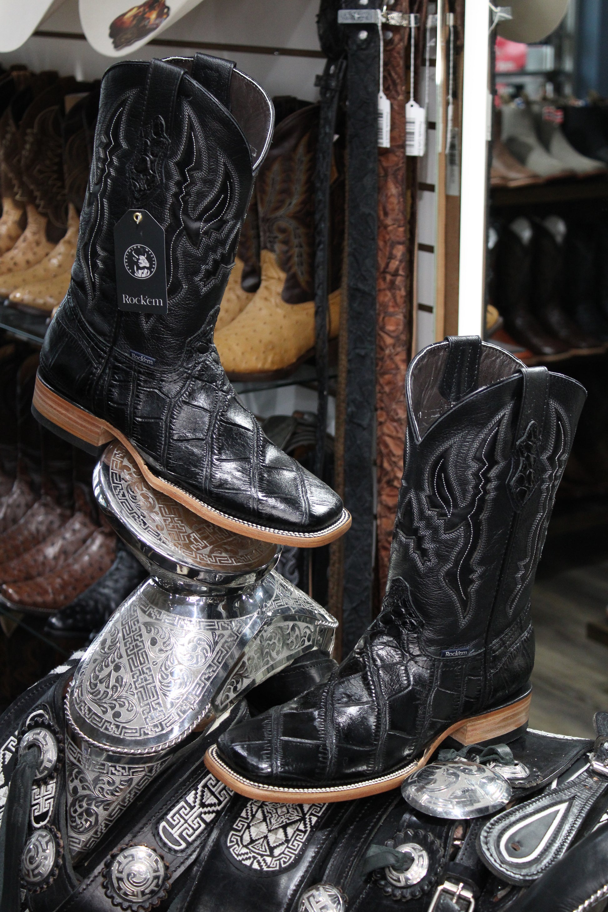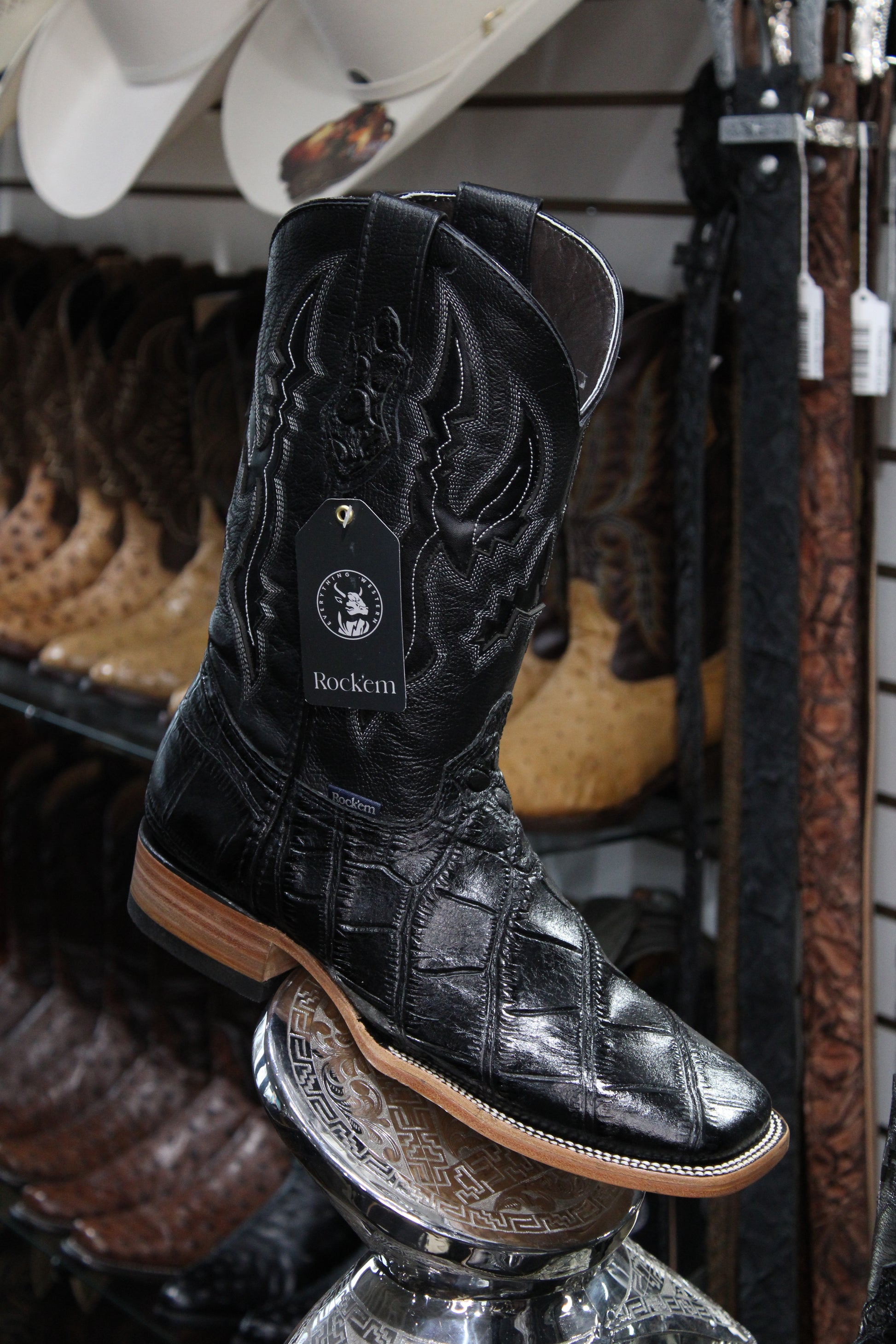 Alligator Belly Square Toe Cowboy Boot - Negro