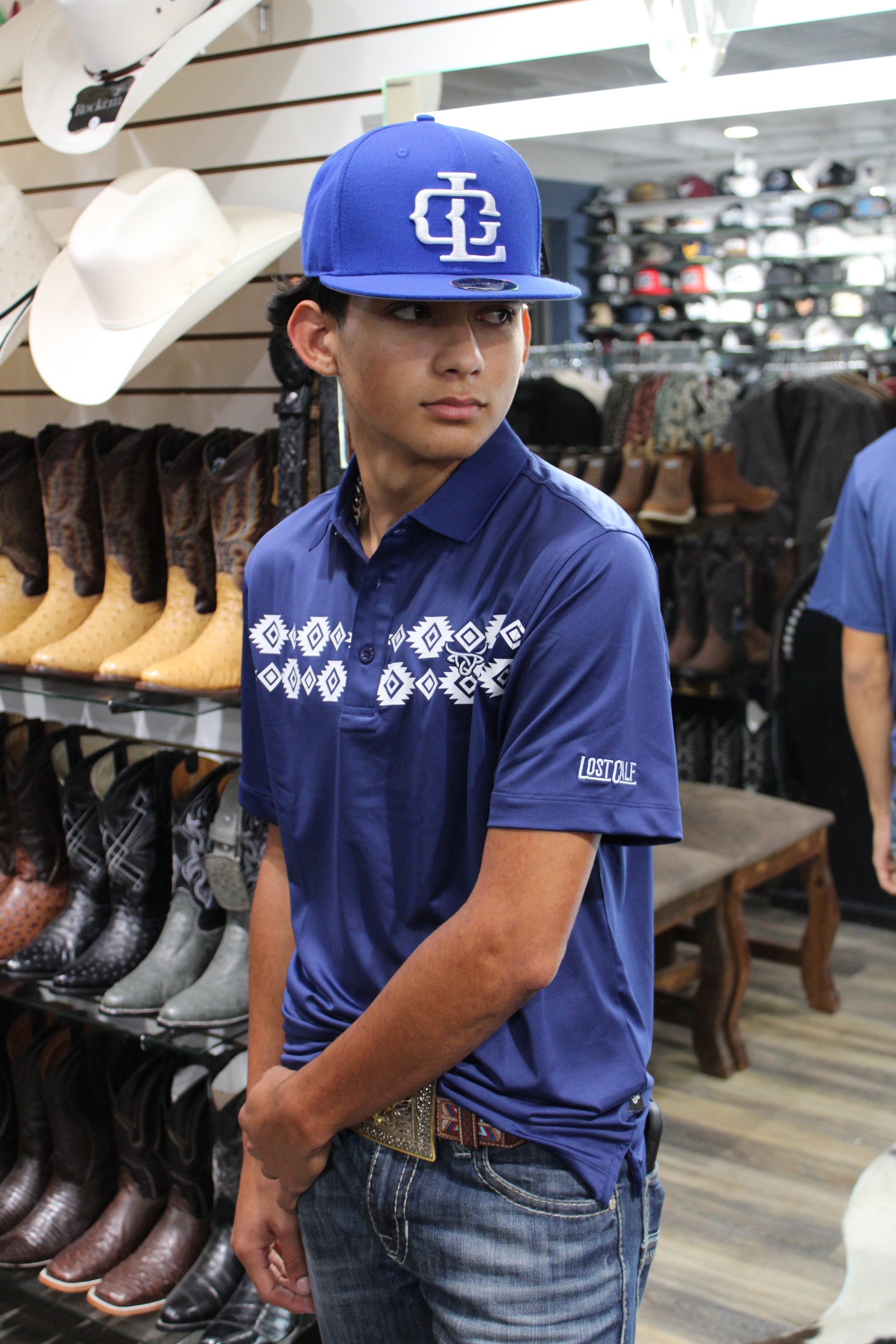 - Decorative logo side tab on left side seam Double needle sleeve and bottom hems