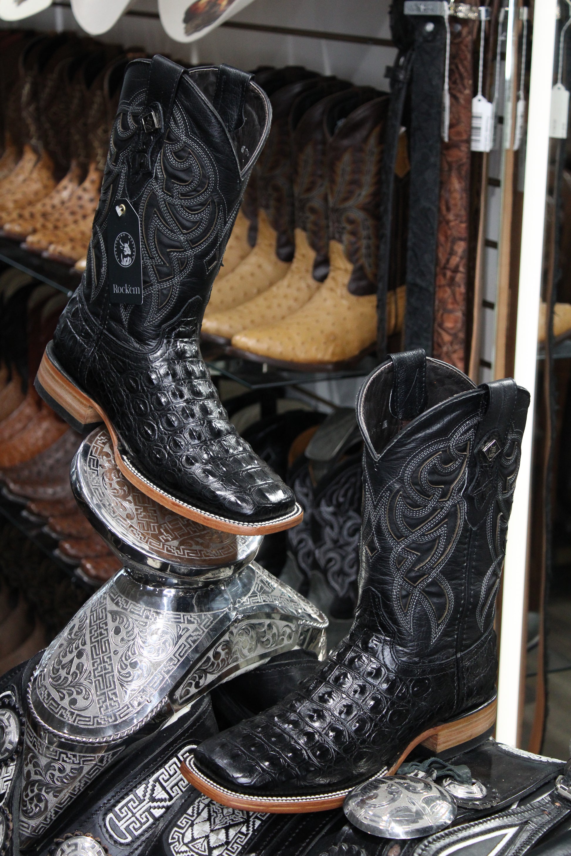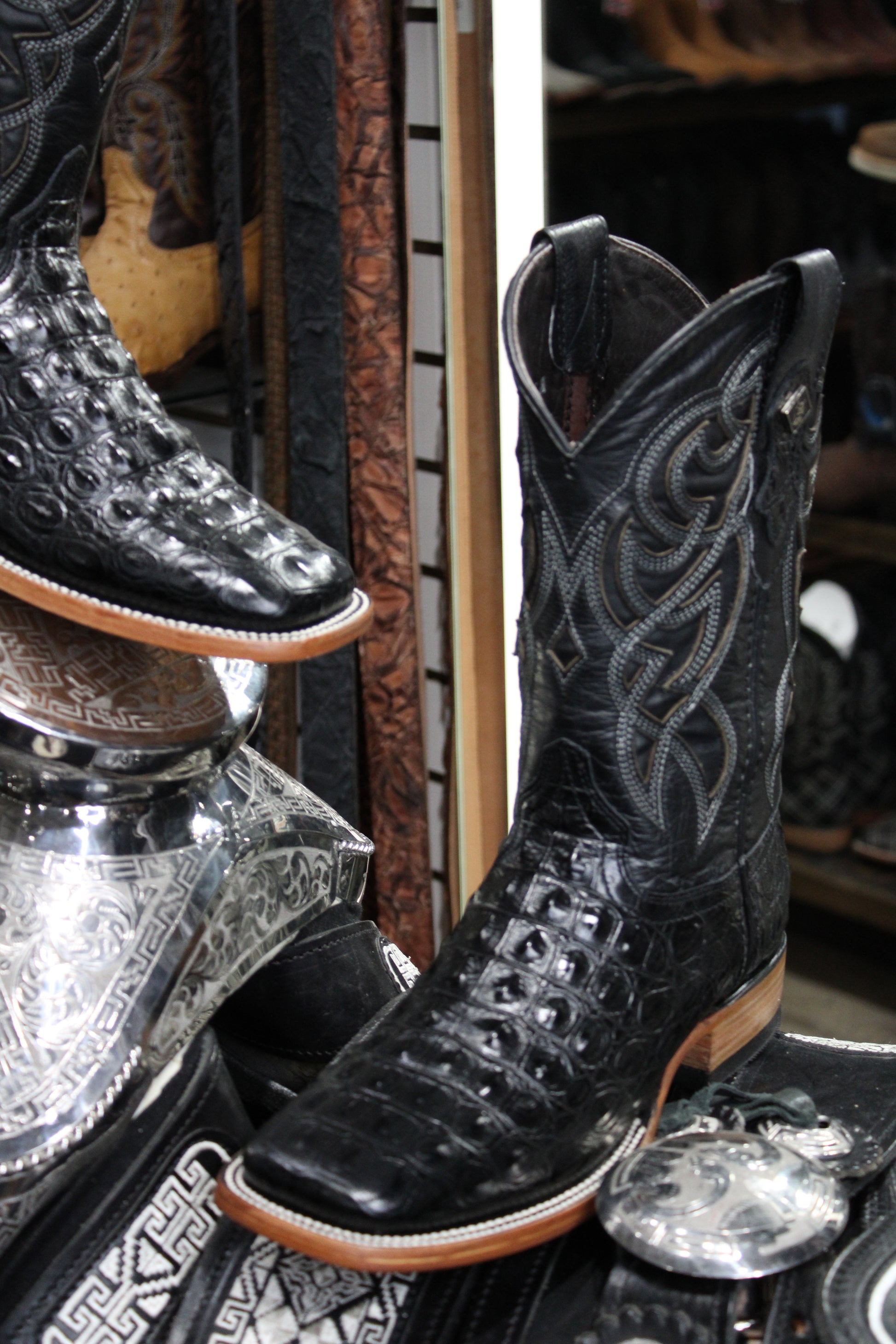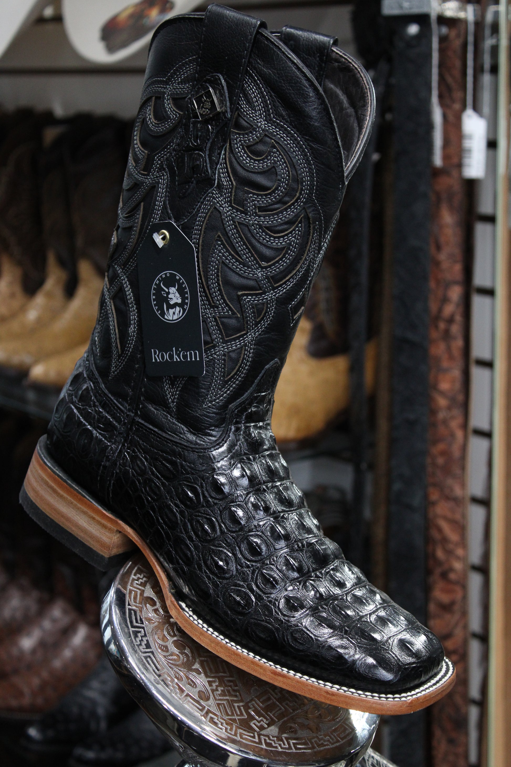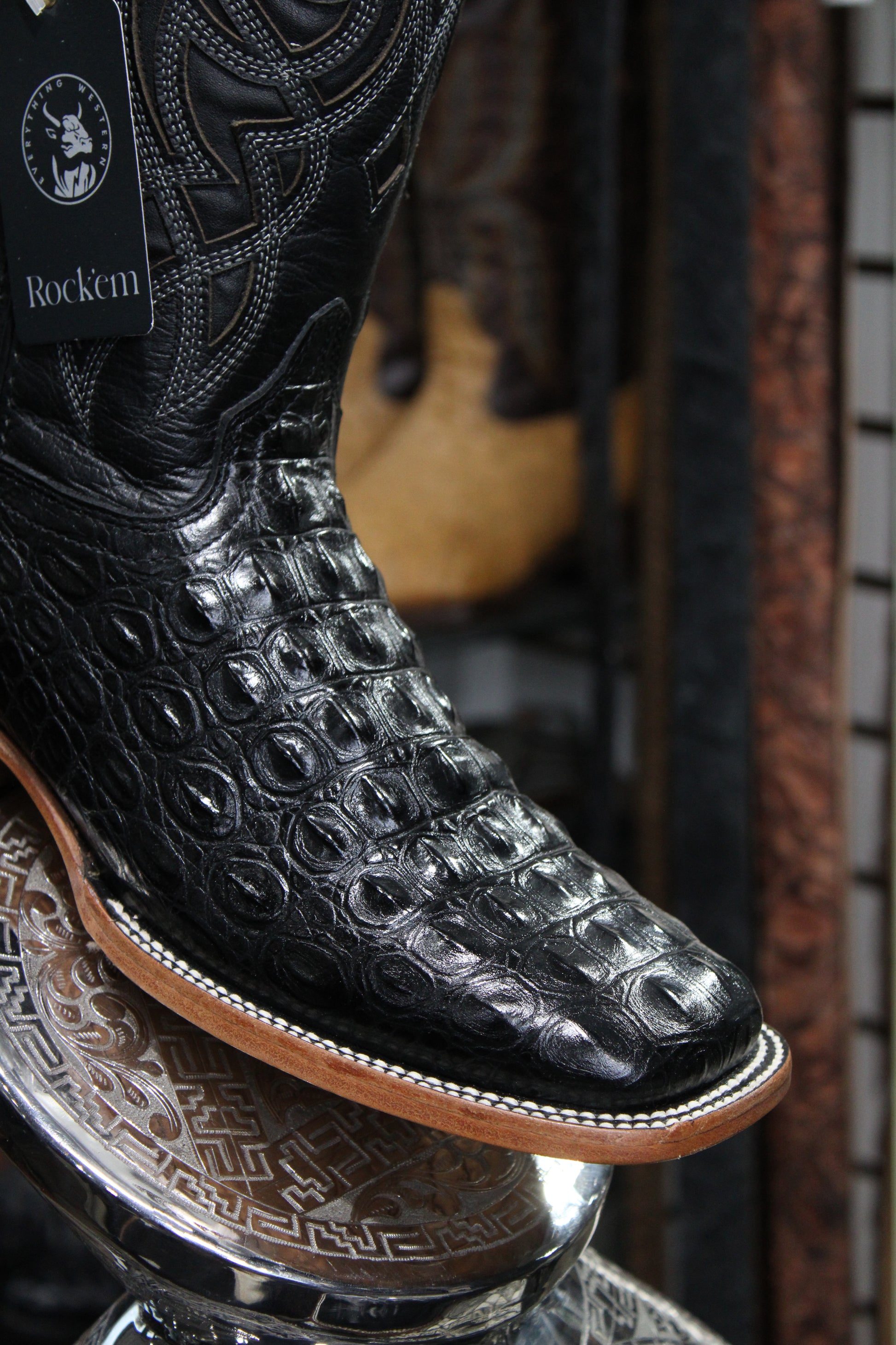 Caiman Hornback Square Toe Cowboy Boot - Black