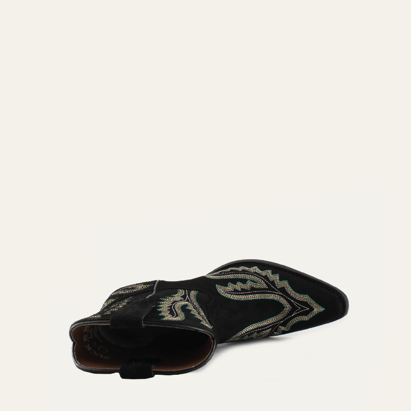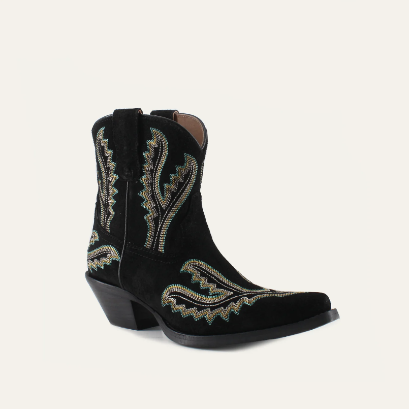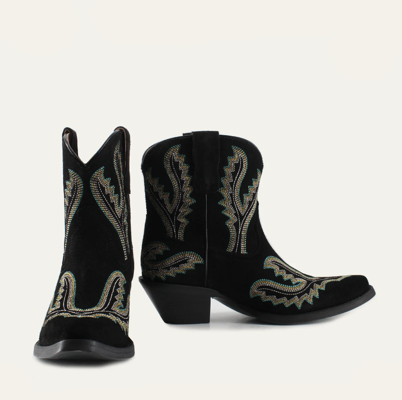 The Eleanor Boot showcases a classic western style with a refined touch. Constructed from high-quality leather, it features a graceful pointed toe, decorative embroidery, and a comfortable stacked heel. The Eleanor Boot is designed to provide both style and comfort, making it a versatile choice for various occasions, from everyday wear to special events.