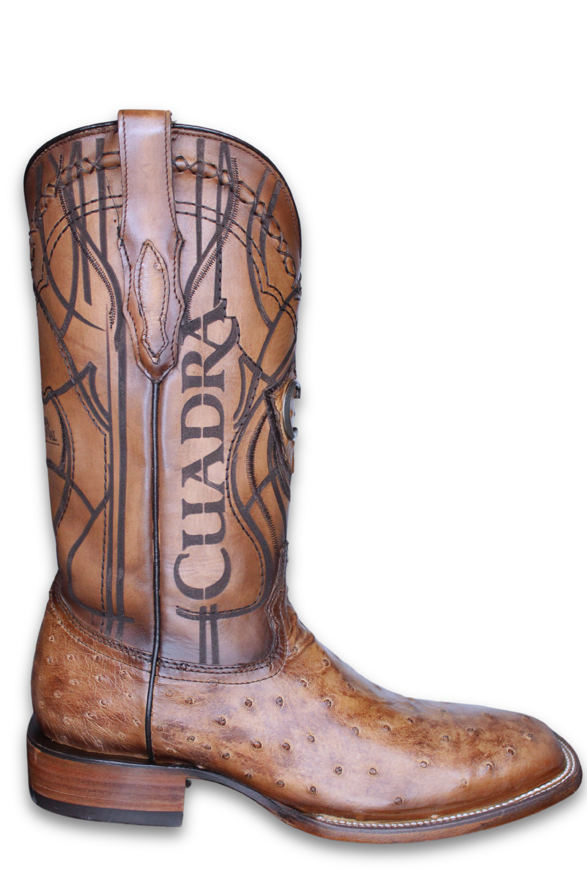 Elevate your style with these exceptional Western boots, meticulously handcrafted from genuine ostrich and bovine leather for a luxurious and durable finish.