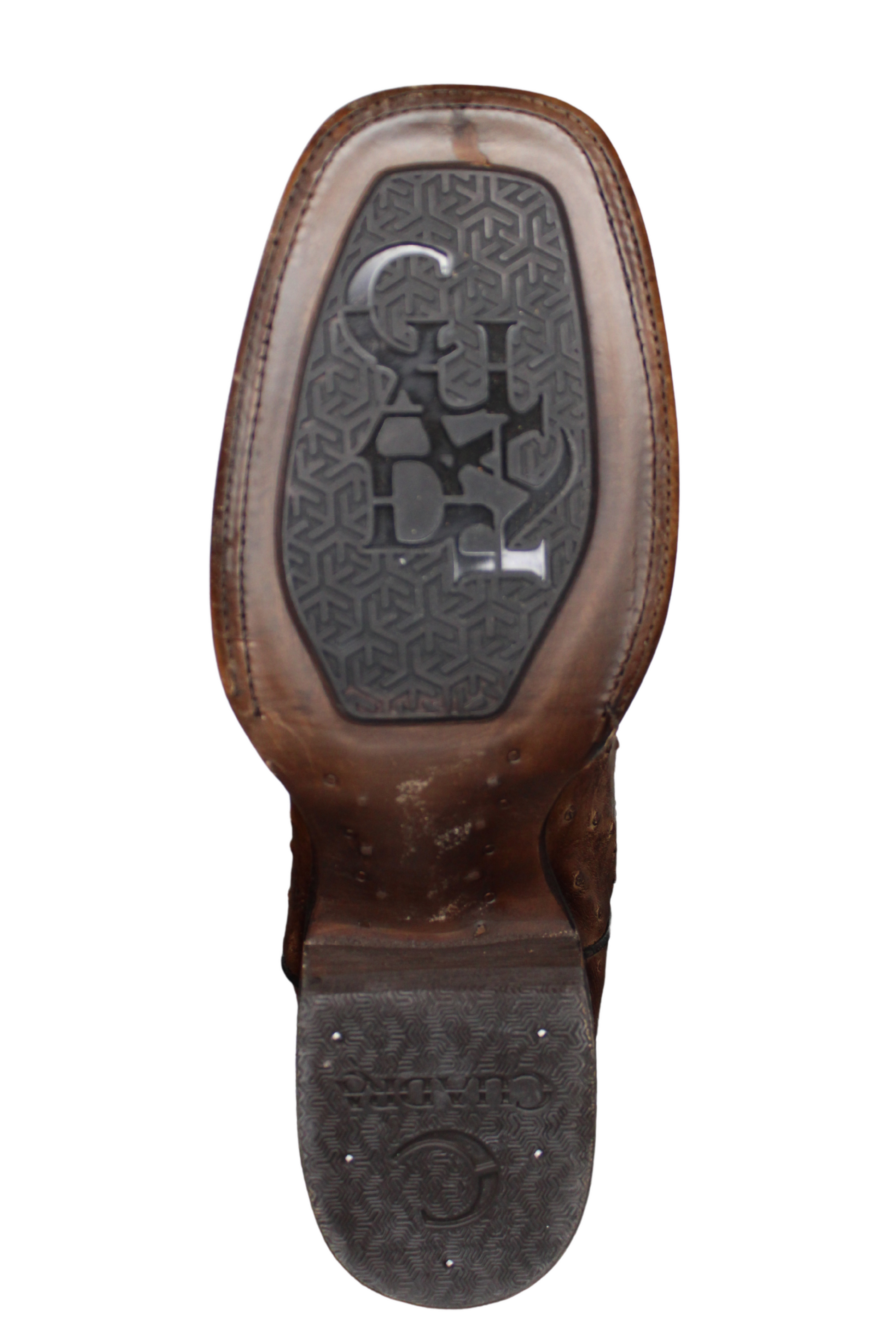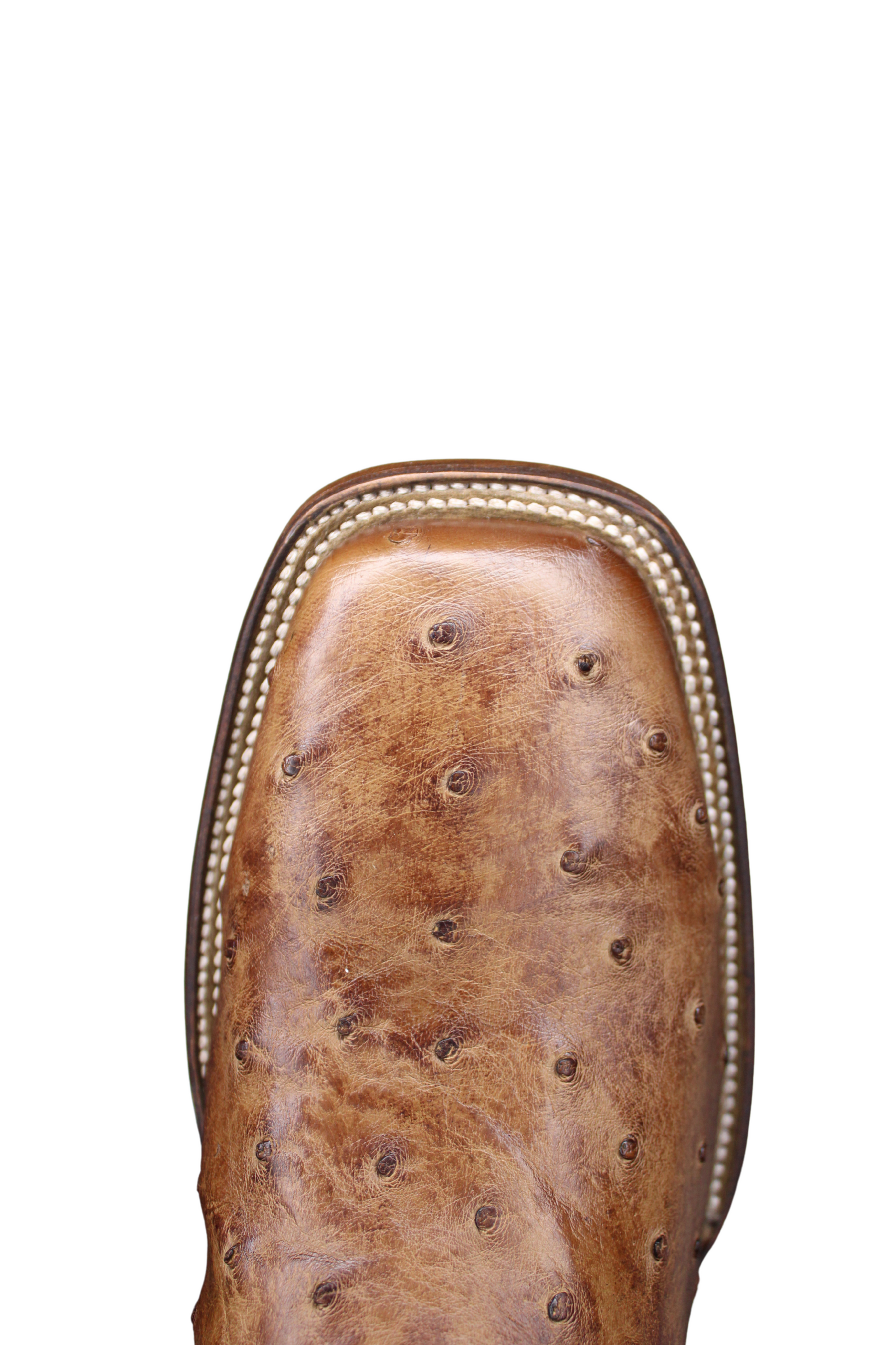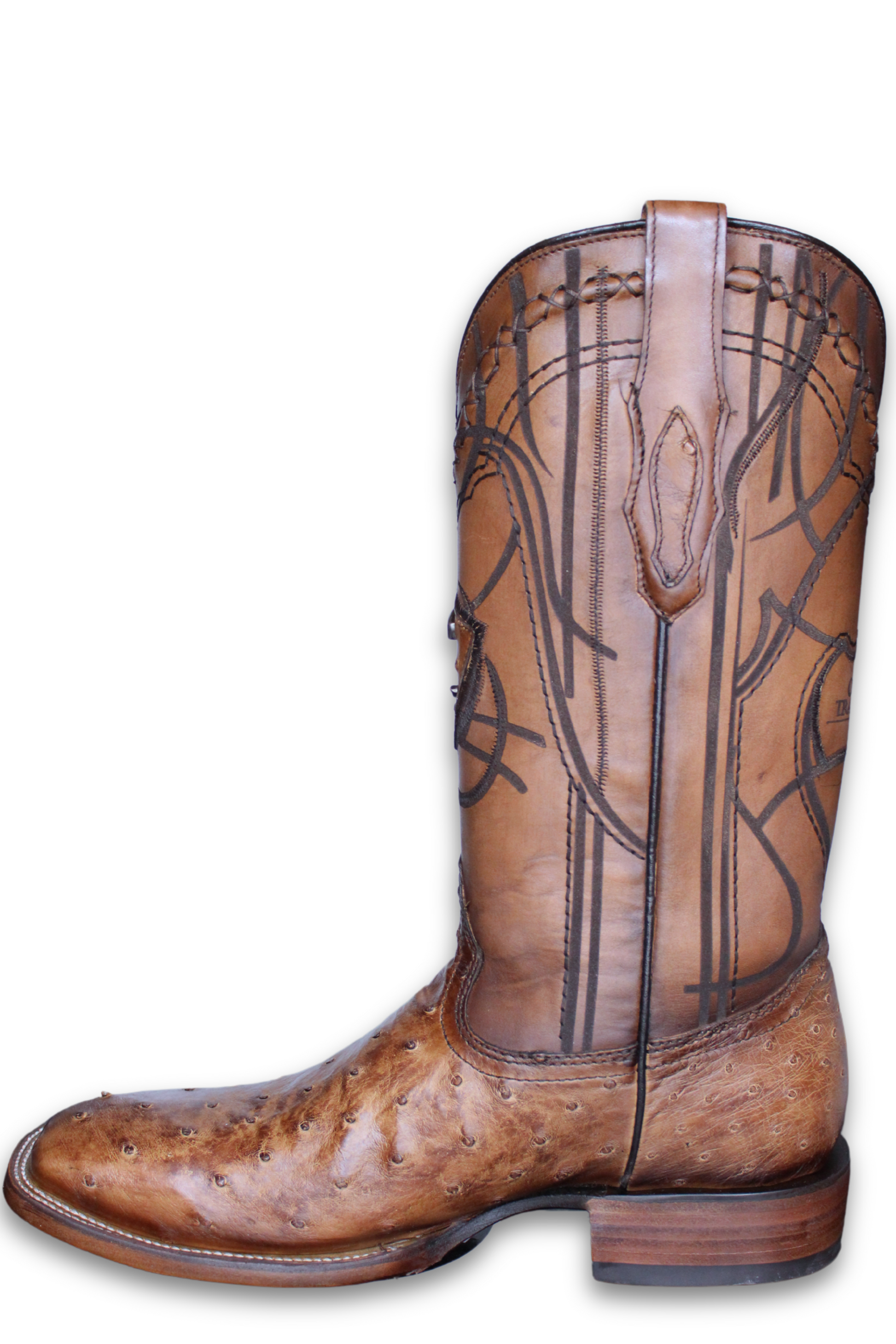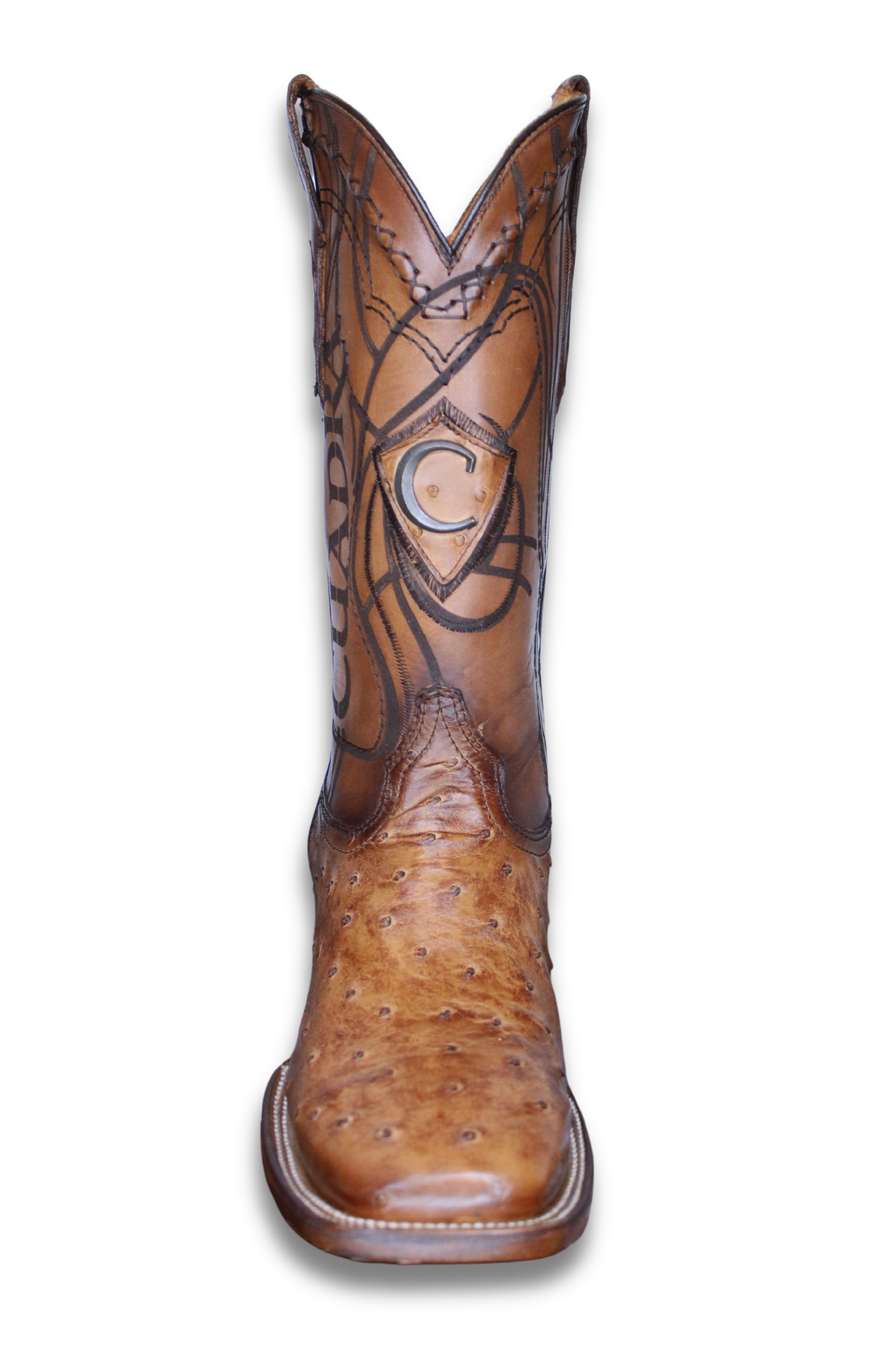 Engraved Lugano Cafe Ostrich Leather Western Boots for Men