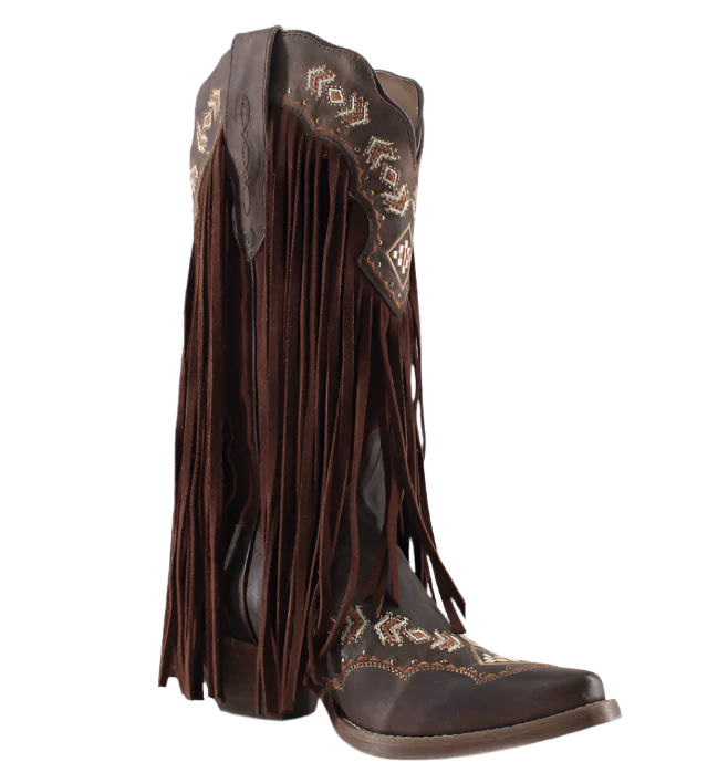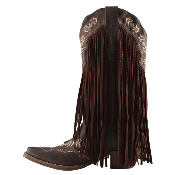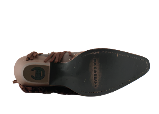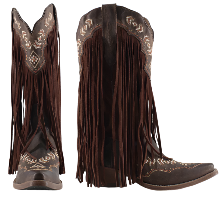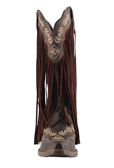 The Franny Boot is a stylish blend of rugged charm and contemporary design. Made from durable leather, it features a classic round toe and a low, sturdy heel. Its standout feature is the fringed detailing that adorns the entire boot, adding a touch of dynamic flair and sophistication