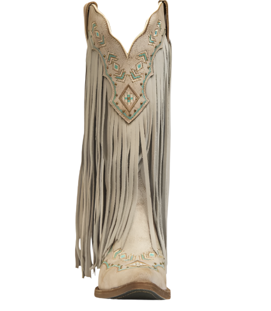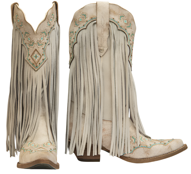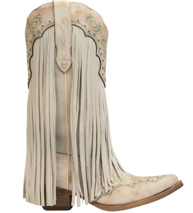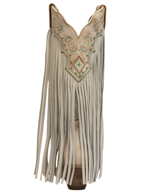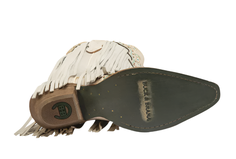 The Franny Boot is a stylish blend of rugged charm and contemporary design. Made from durable leather, it features a classic round toe and a low, sturdy heel. Its standout feature is the fringed detailing that adorns the entire boot, adding a touch of dynamic flair and sophistication