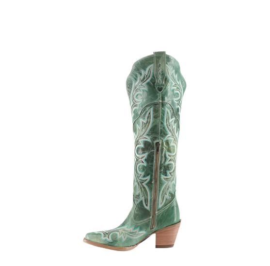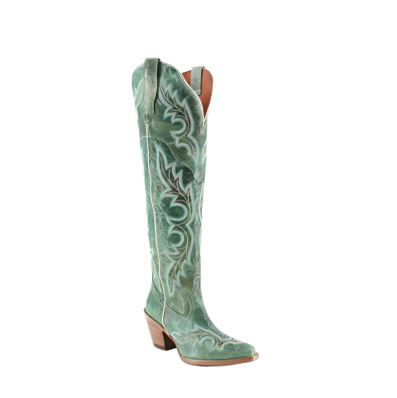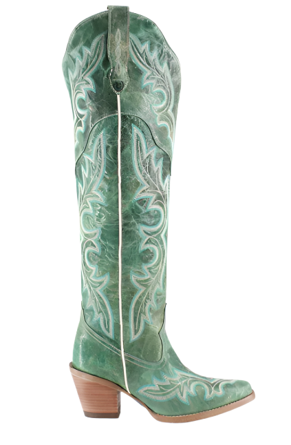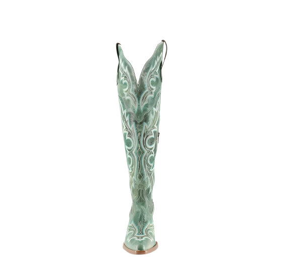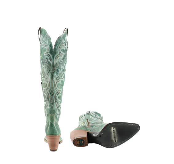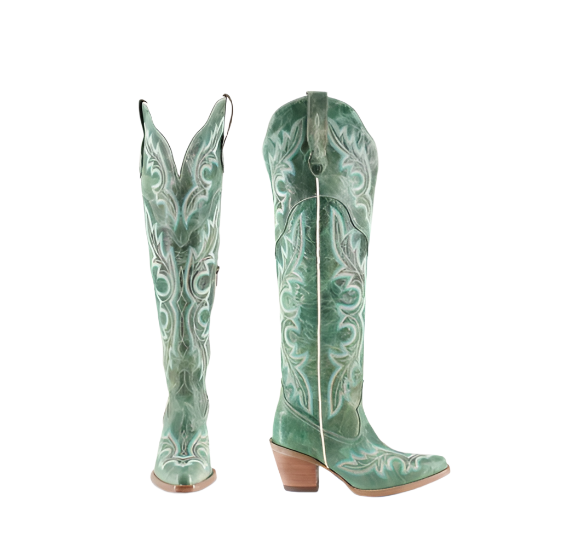 The Julia Boot combines sophistication with rugged charm. Crafted from high-quality leather, it features a sleek, pointed toe and a comfortable stacked heel. The standout element is its elegant detailing, which adds a refined touch to the classic western silhouette. Designed to rise above the knee, the Julia Boot offers a dramatic and stylish look.