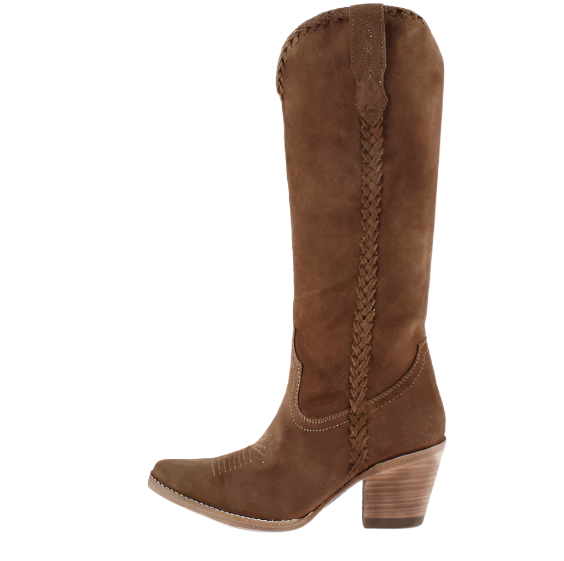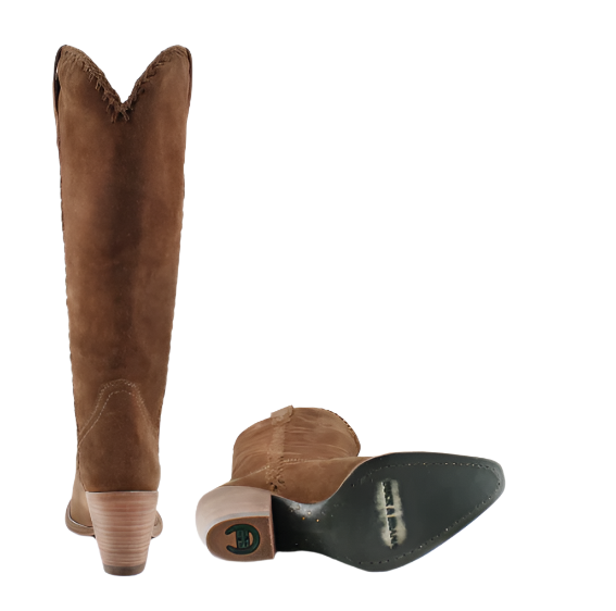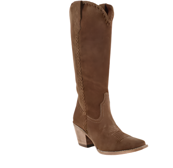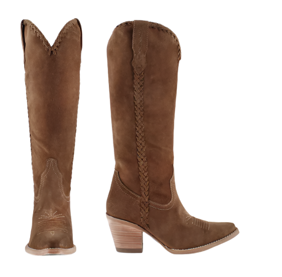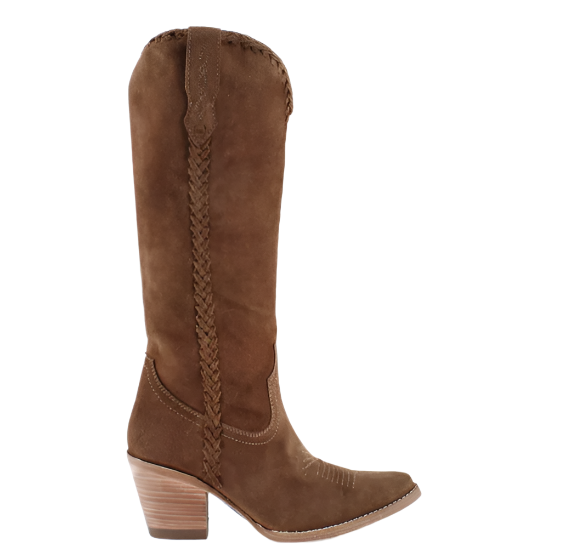 The Kenia Boot combines classic western style with modern sophistication. Made from premium leather, it features a pointed toe and a comfortable mid-height heel. The boot is designed to be high, extending up the calf for a dramatic look.