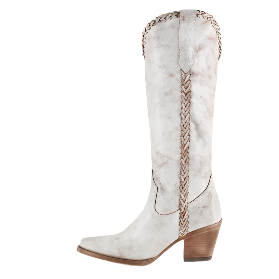 The Kenia Boot combines classic western style with modern sophistication. Made from premium leather, it features a pointed toe and a comfortable mid-height heel. The boot is designed to be high, extending up the calf for a dramatic look.
