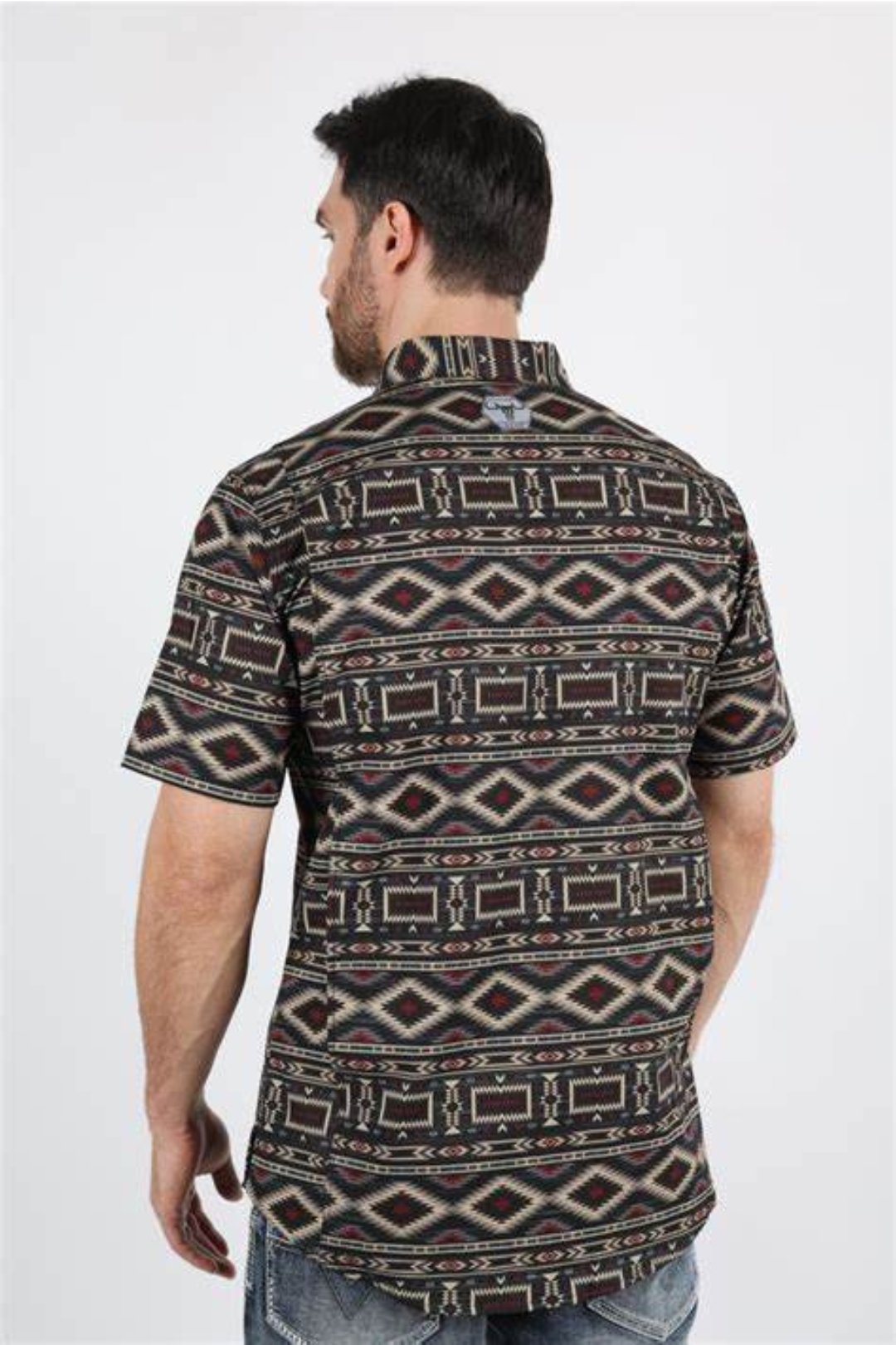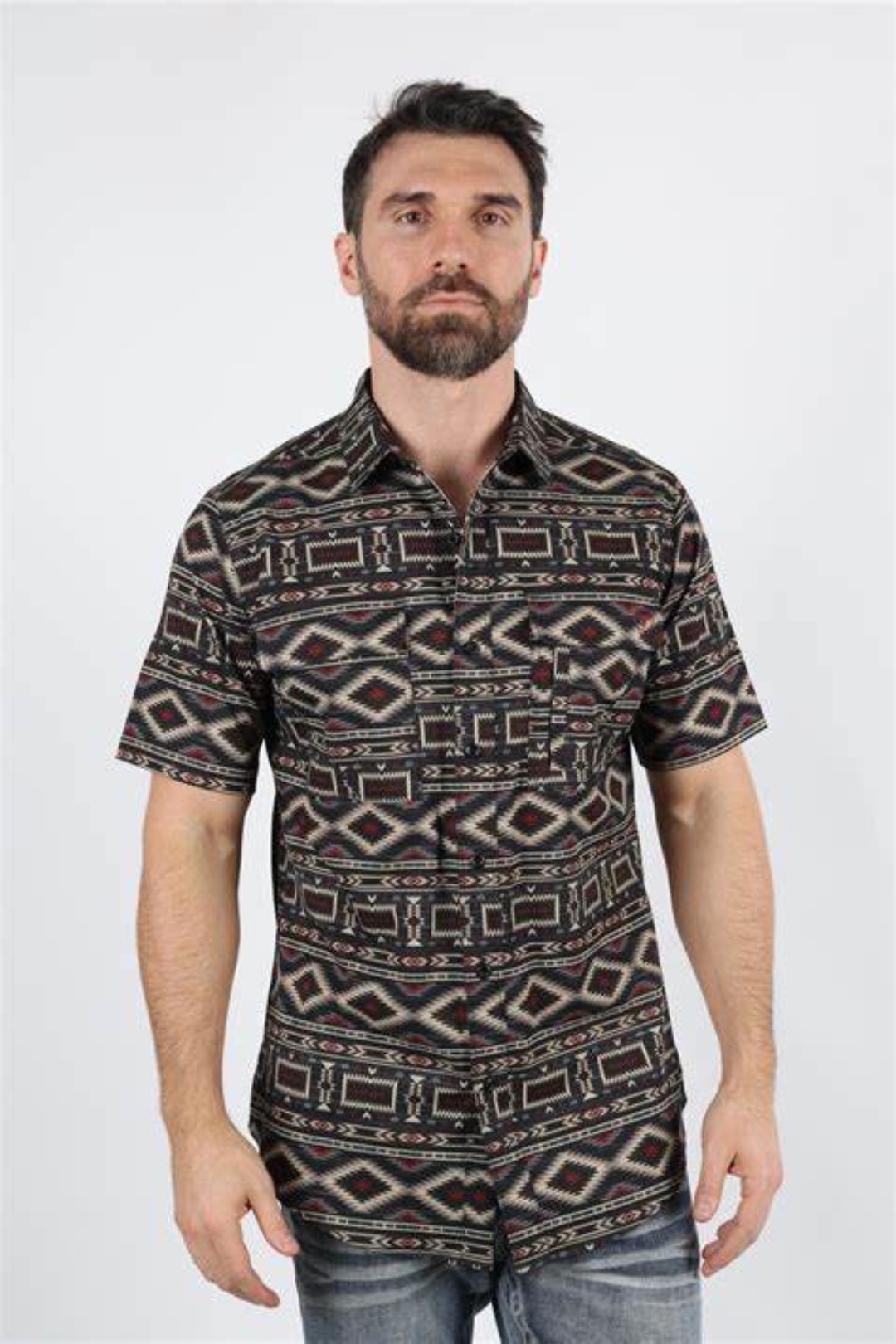 Mens Performance Classic Fit Western Short Sleeve Aztec Print BLK/Red Shirt