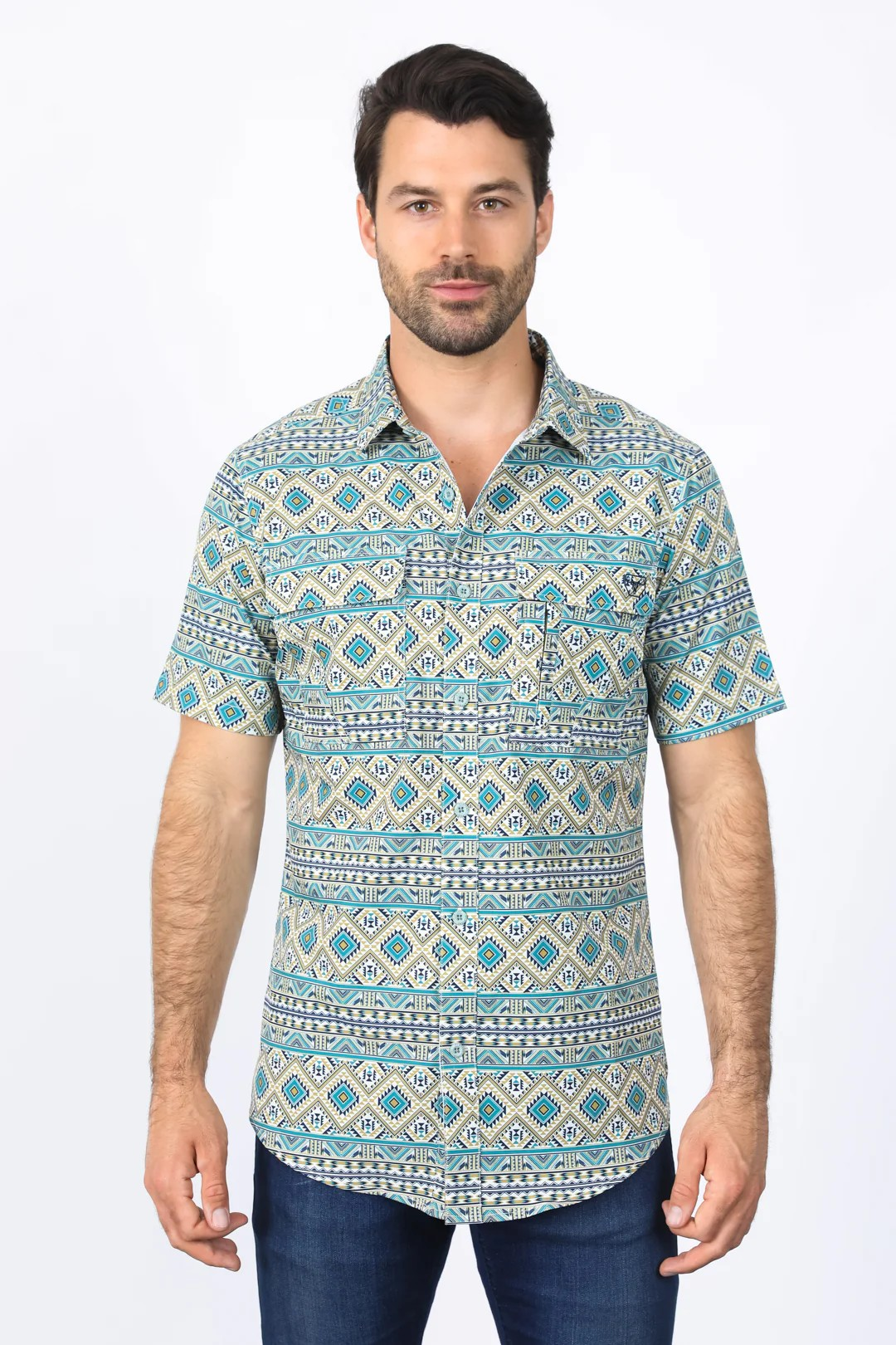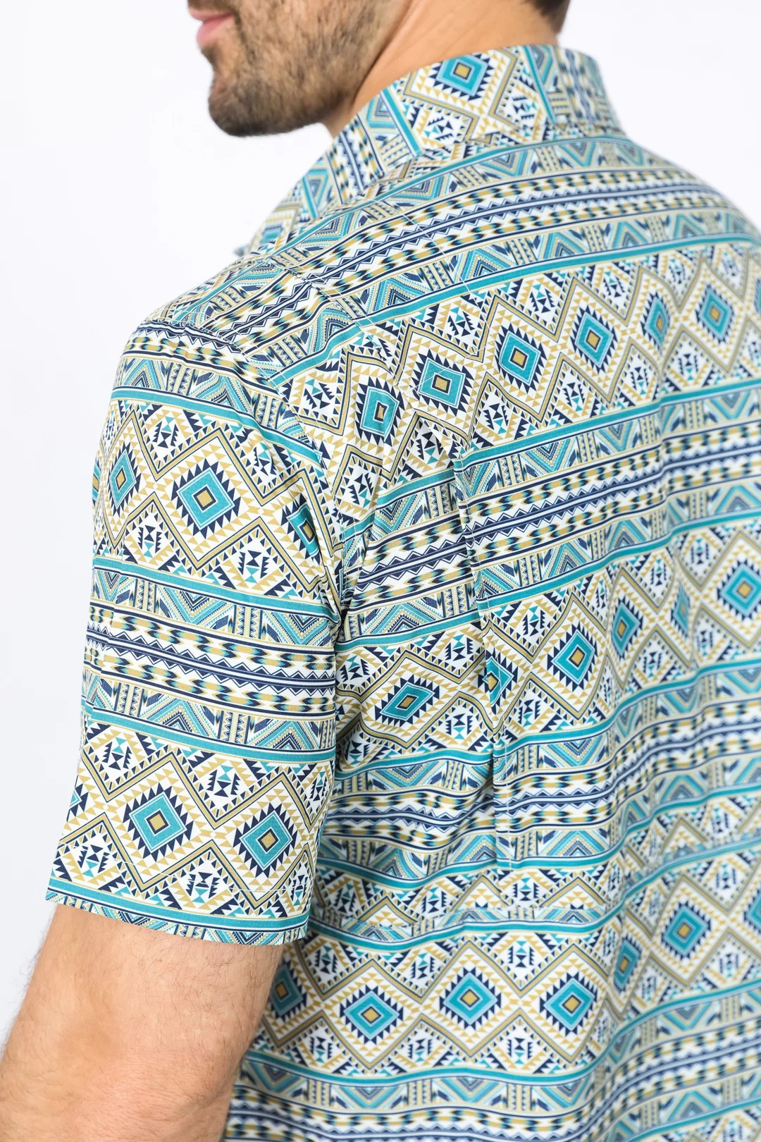 Description: Embrace the spirit of the American West with our Mens Performance Classic Fit Western Short Sleeve Aztec Print Shirt. Crafted for comfort and style, this shirt features a classic fit silhouette with a striking Aztec print design. Perfect for casual outings or rugged adventures, it offers a blend of performance and traditional Western charm.