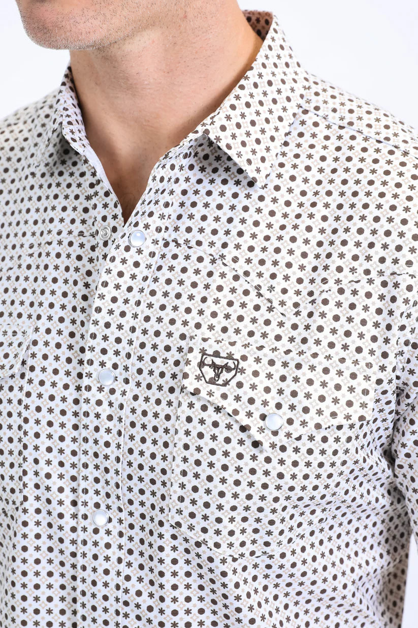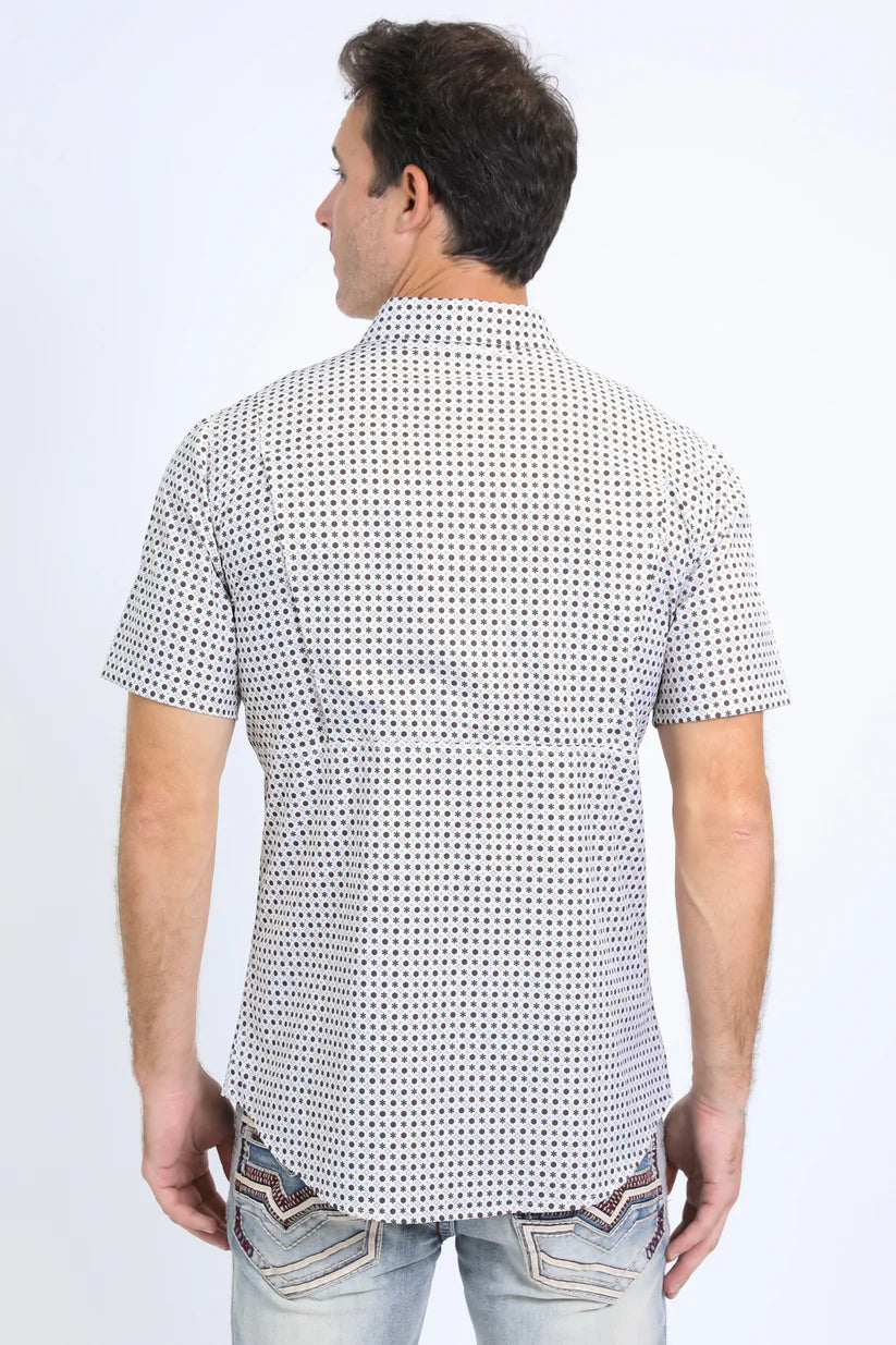 Mens Performance Western Short Sleeve Aztec Print White Shirt