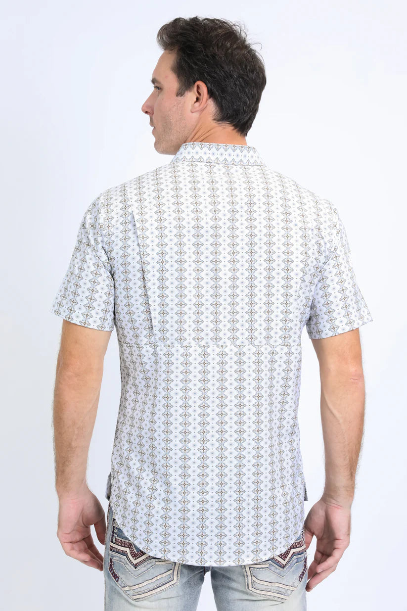 Mens Performance Western Short Sleeve Aztec Print White Shirt