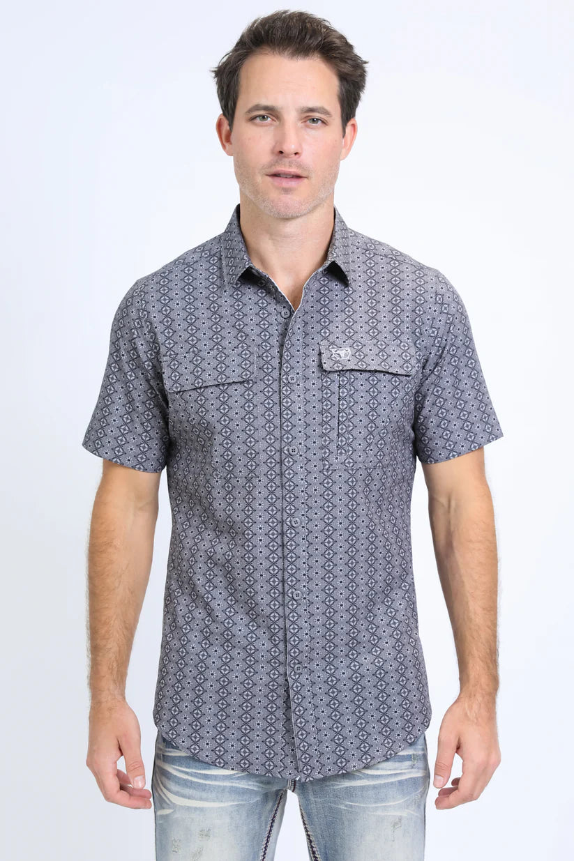 Mens Performance Western Short Sleeve Aztec Print Grey Shirt