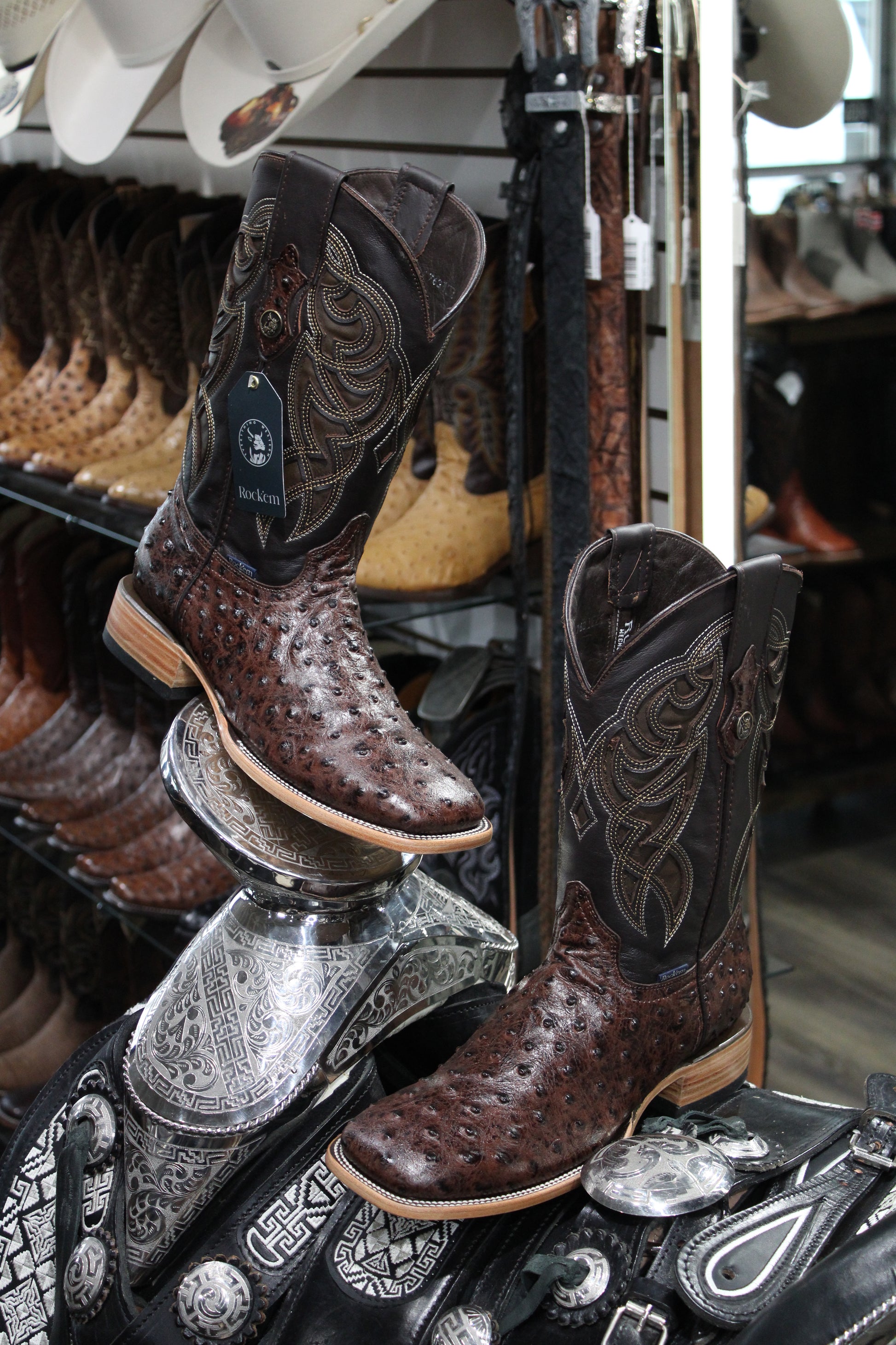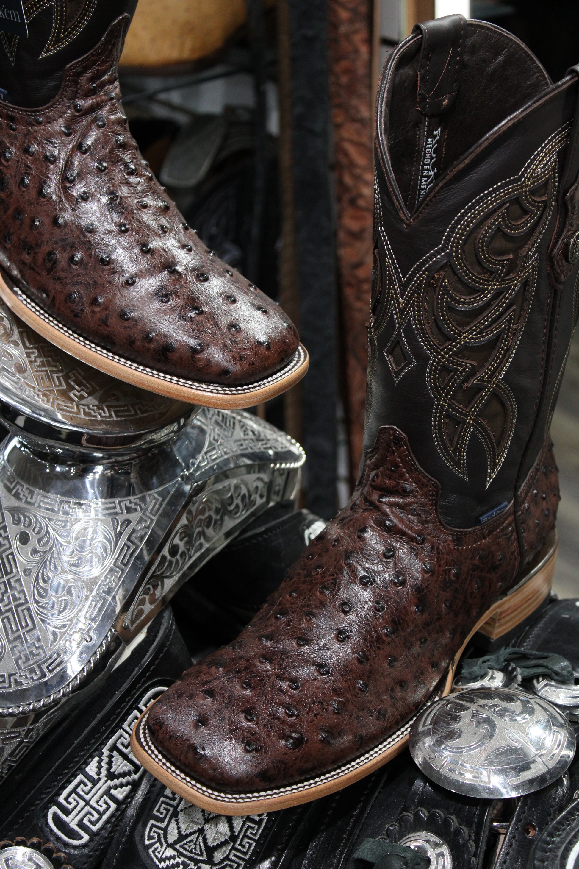 Ostrich Ranch Square Toe Cowboy Boot - Brown