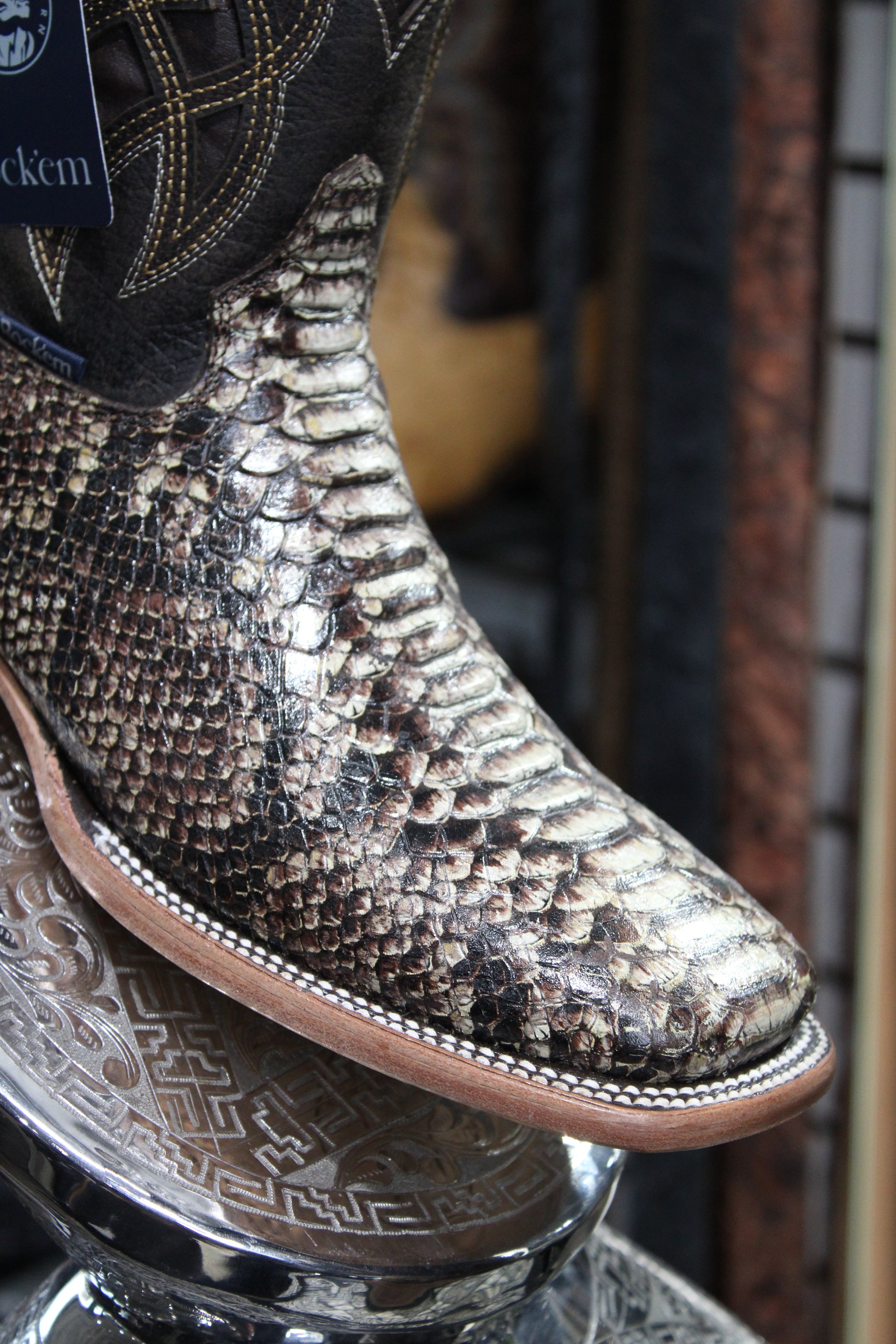 Python Square Toe Cowboy Boot - Choco