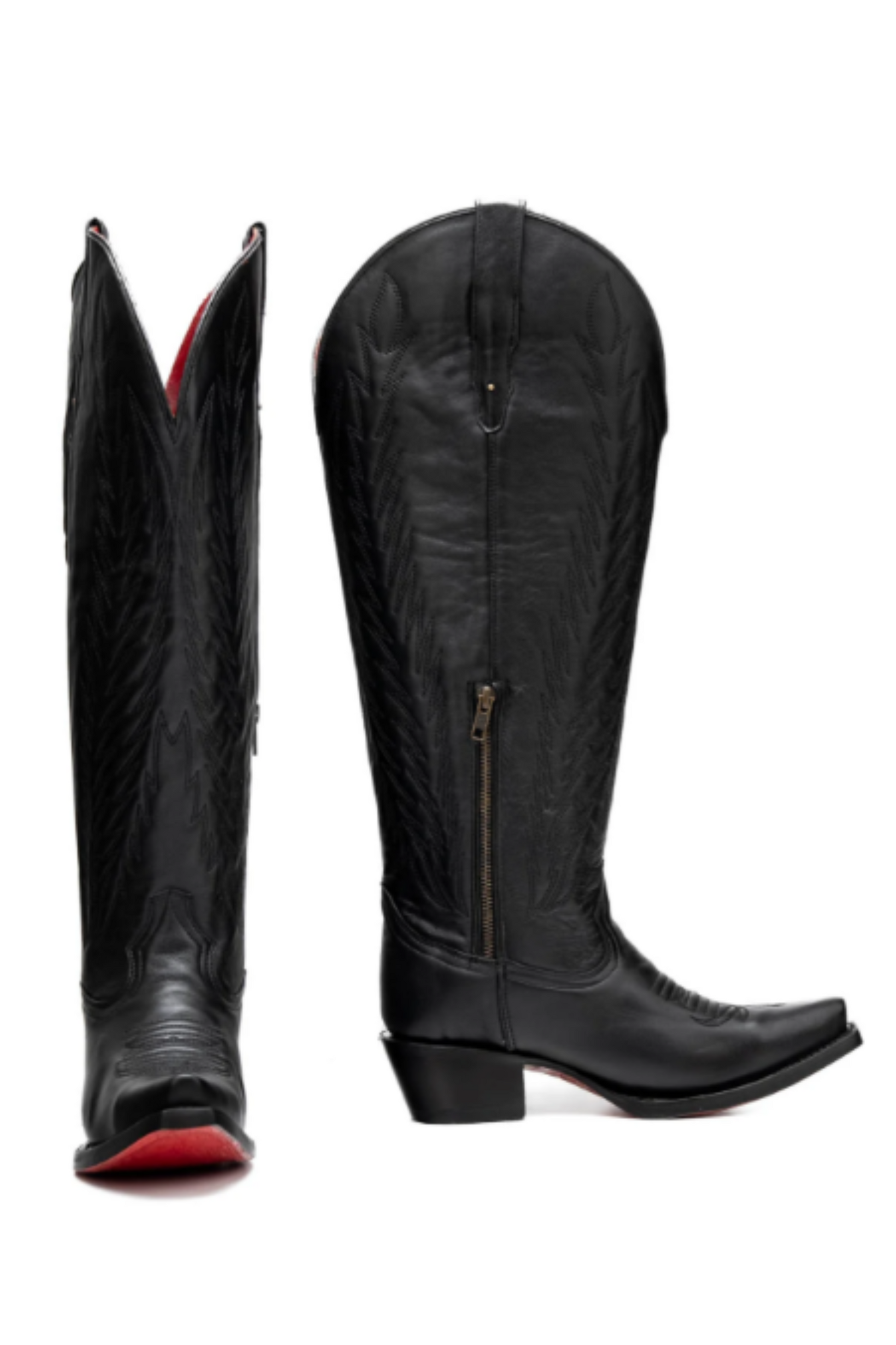 Valentina Tall Red Bottom Wide Calf Snip Toe Cowgirl Boot - Black